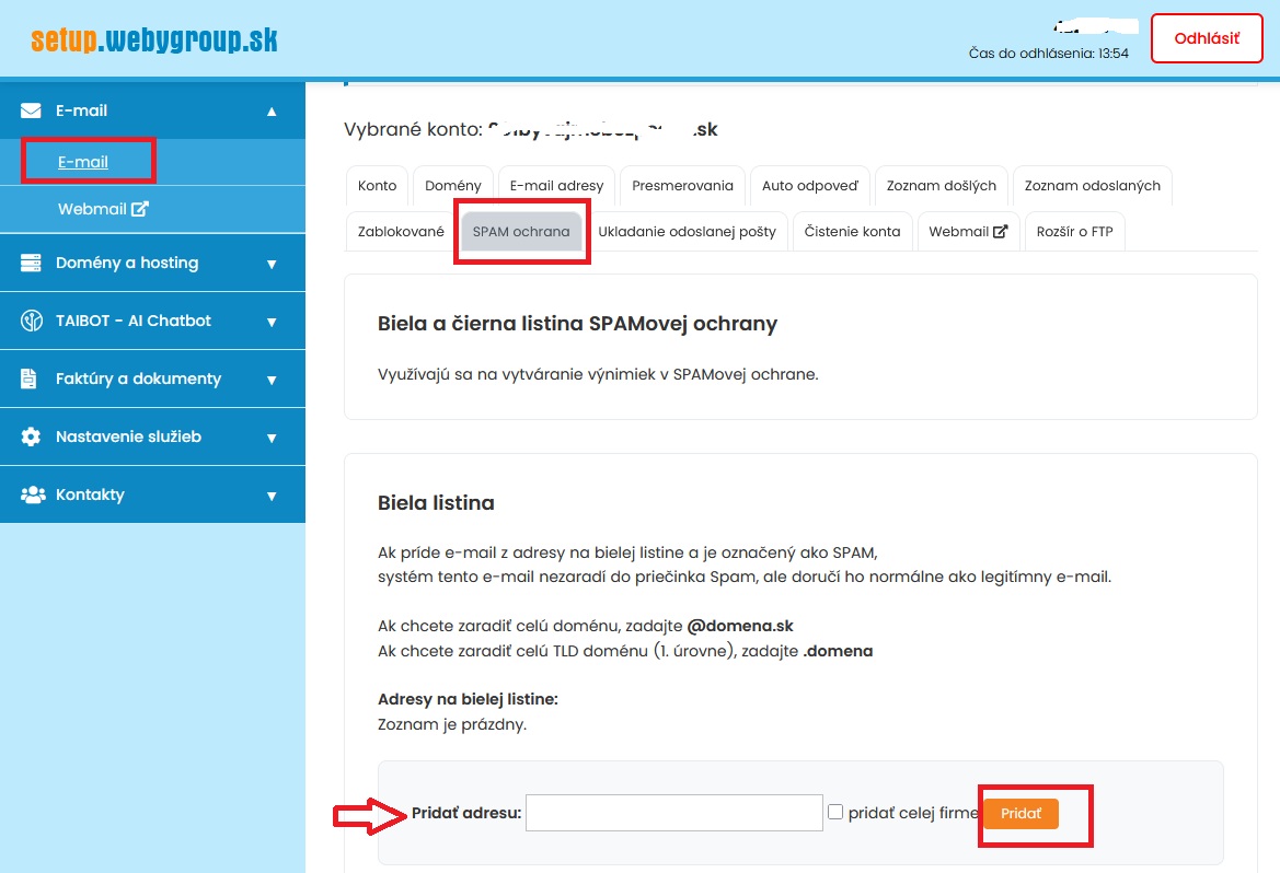 Postup na vytvorenie bielej listiny SPAM ochrany