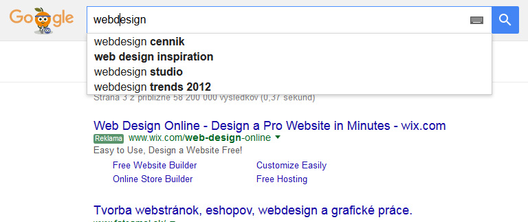 Pri zadávaní slov do vyhľadávacieho poľa sám Google Vám „pomáha“ a ponúka predpokladané slovné spojenia.